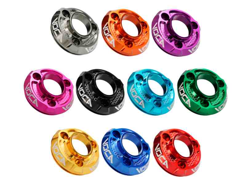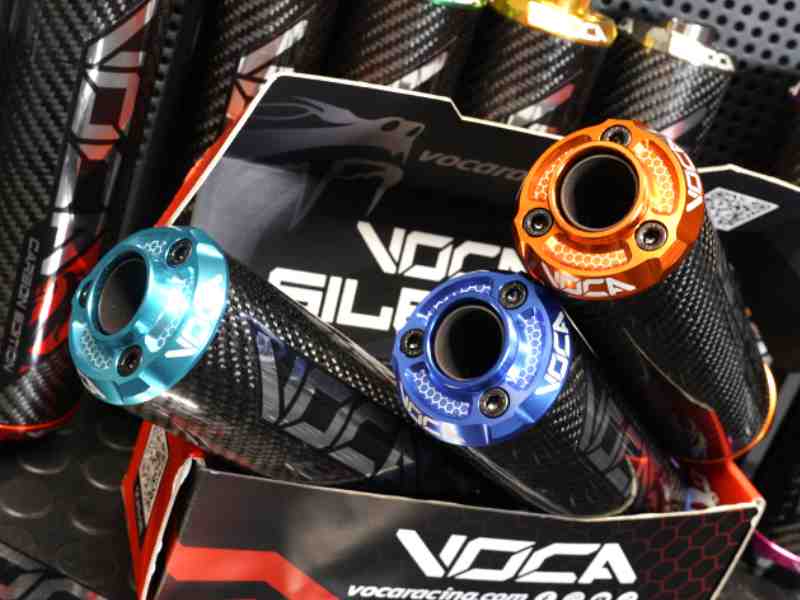 Fraaie carbon demper met gekleurde endcap, geschikt voor de Sherco 50 modellen.